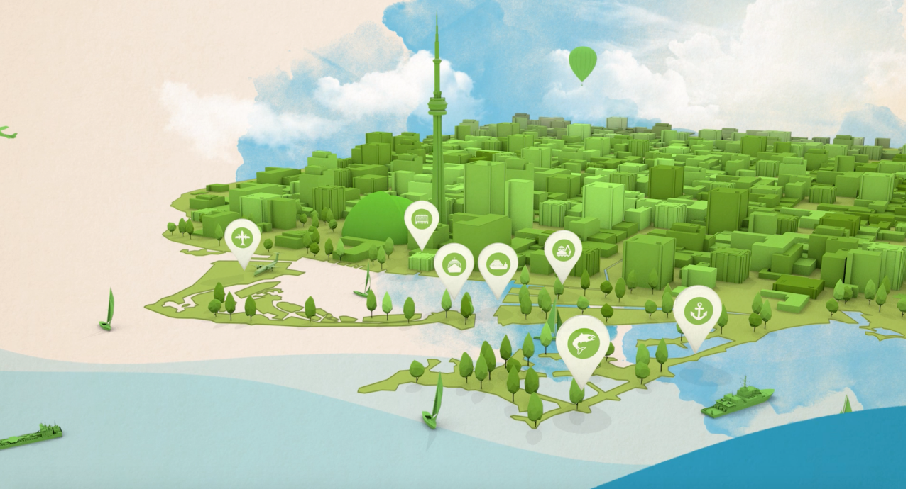 The challenge was to describe, in the most simplified form, the various facets of the Ports Toronto operations in a looping animation (often in 100 frames or less). Additionally, the mandate to keep the animations accurate to the area as well as being entertaining to watch was of utmost importance.